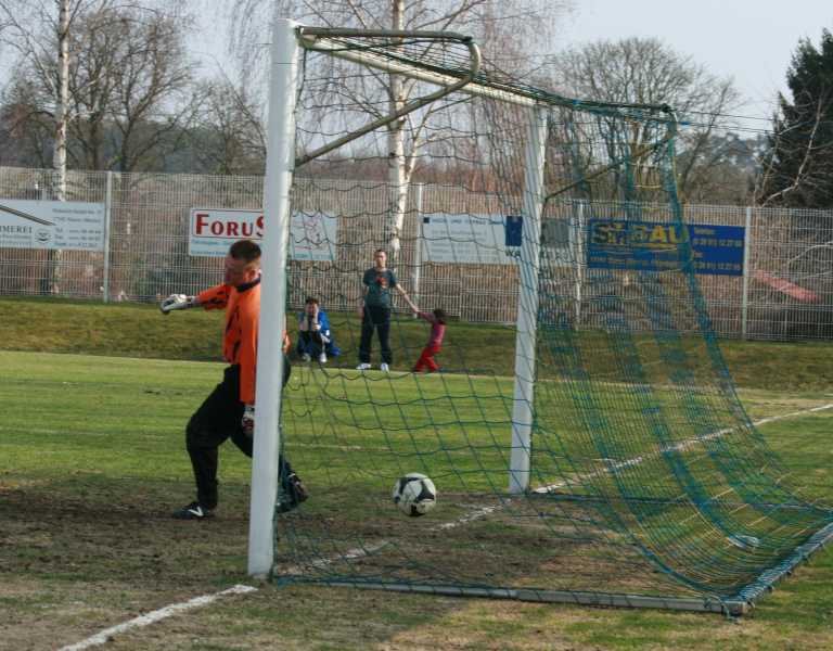 Trotz der augenscheinlichen Überlegenheit der Plastener tauchten die Wokener vor allem mit ihrer bis dahin einzigen Spitze Thomas Reimer immer wieder gefährlich in der Plastener Hälfte auf. Das Tor erzielten dann aber doch verdientermaßen die Hausherren. Eine Flanke von Sven Marquardt hätte der heute indisponiert auftretene Youngster der Plastener Henning Voß schon einköpfen müssen. Den vom Torwart abprallenden Ball verwandelte David Haupt resolut zur 1:0 Pausenführung.