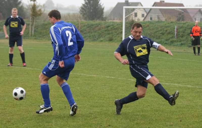 Aushilfstrainer Torsten Hagenow motivierte in der Pause seine Jungs noch einmal. Und sie wagten dann auch etwas mehr. Die Folge waren einige erfolgversprechende Aktionen vor dem gegnerichen Tor, aber auch größere Räume für die Neubrandenburger bei ihren Gegenzügen. Einer dieser Angriffe brachte die Plastener Abwehr in Unterzahl und Belzer konnte Fuchs nur per Klammergriff am Torschuss hindern. Auch der zweite Elfmeter wurde sicher verwandelt. Die Neubrandenburger, in dessen Reihen auch der im letzten Jahr in Plasten veabschiedete Enrico Goll mitwirkte, begnügten sich mit dem Resultat und die Plastener konnten leider keine der zaghaften Angriffsbemühungen in Tore ummünzen. |