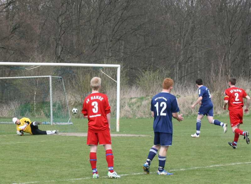 Durch die letzten drei Siege lief die Zweite auch gegen den souveränen Tabellenführer mit Selbstbewustsein auf den Rasen des Nebenplatzes des Plastener Sportparkes. Bis in die letzte Minute der ersten Halbzeit hielt man das Unentschieden und hatte sogar die Riesenchance in Führung zu gehen. Top-Goalgetter Erik Gaedeke wurde bis dahin abgemeldet. Was die Abwehrspieler nicht bereinigten, putzte ein äußerst gut aufgelegter Tobias Rohde im Plastener Tor weg.