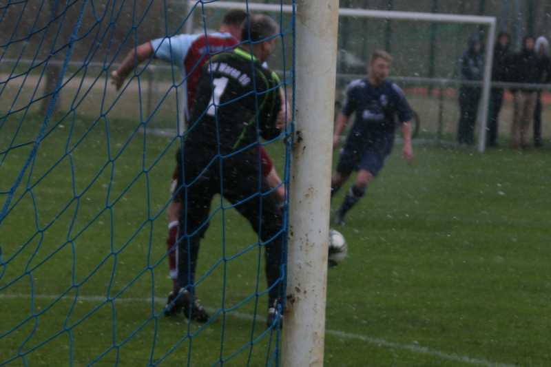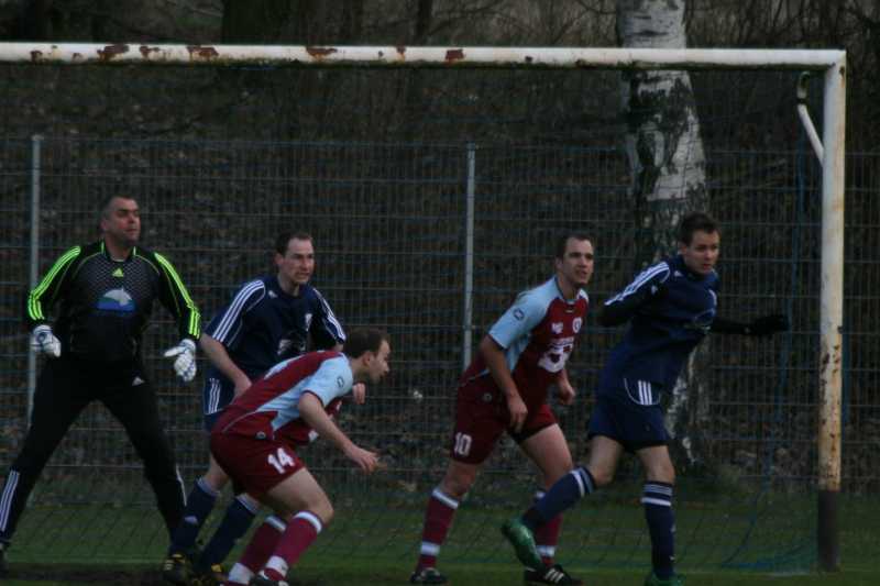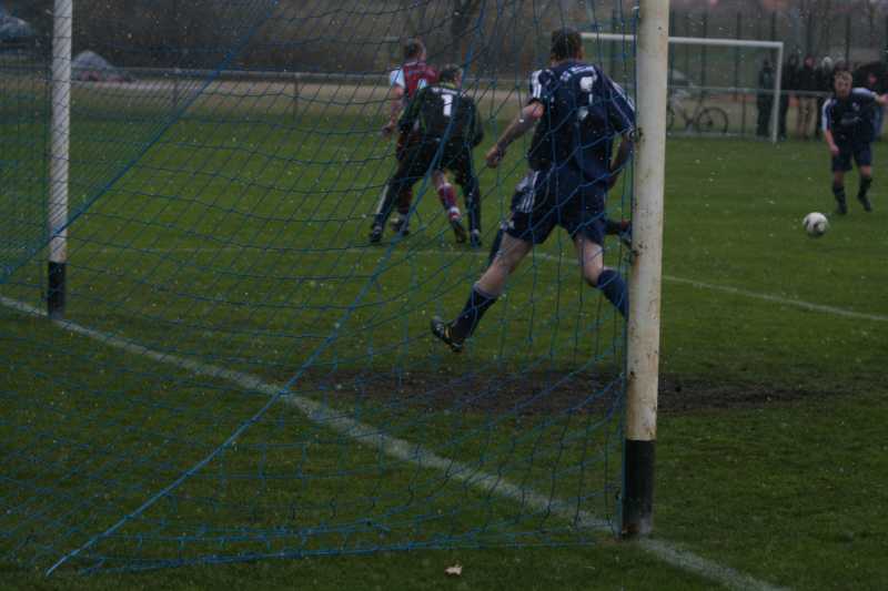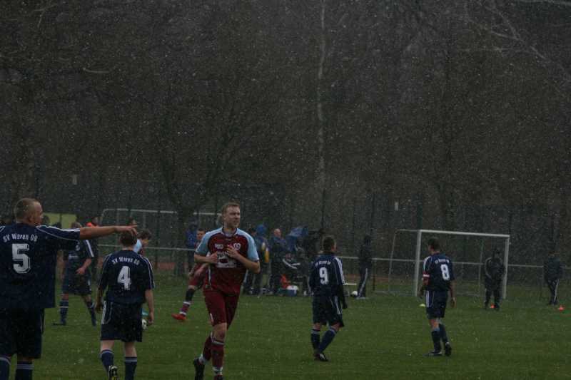 Die Plastener versuchten sich jetzt aus ihrer eingeigelten Stellung etwas zu befreien und spielerisch das Mittelfeld zu überbrücken, was leider nur selten gelang. So musste ein ruhender Ball zum Ausgleich herhalten. Kay Ruschin spielte den Ball vor den Warener Kasten, wo Daniel Friemann vor Thomas Vierow an den Ball kam und den am 16er stehenden Sven Marquardt bediente. Der schoss sofort in das verwaiste Tor zum 1:1 Ausgleich (39). Beim einsetzenden Eishagel erwarteten Spieler und Zuschauer nur noch den Halbzeitspfiff. Im Spiel passierte nichts mehr.