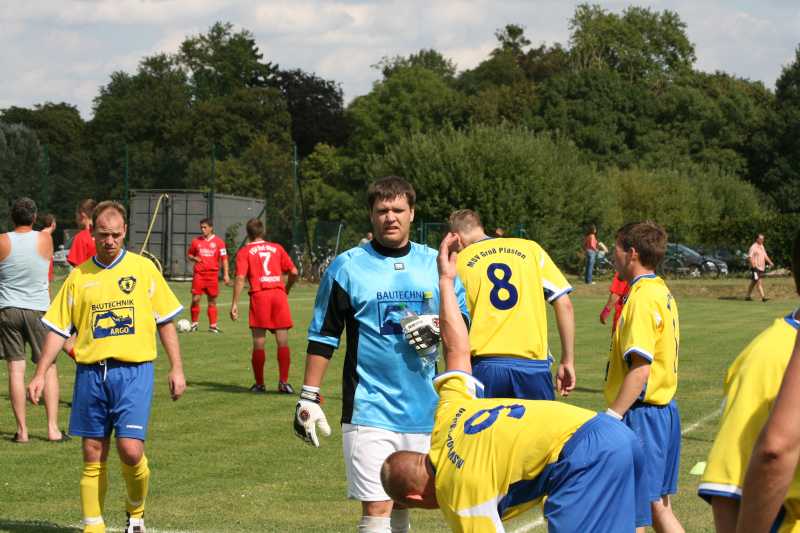 Wer jetzt gedacht hat, der Bann sei gebrochen und der Gegner würde einbrechen, lag völlig daneben. Ungläubig sah man auf der Plastener Bank jetzt einen völlig unverständlichen Leistungsabfall der Mannschaft. Immer mehr Abspielfehler begünstigten die Angriffsbemühungen des sich energisch wehrenden Gastgebers und immer häufiger setzten sich die heimischen Stürmer in Szene und wurden in der 76. Minute verdientermaßen mit dem Ausgleich belohnt. Zwei Minuten später hatten sie sogar die Riesenchance zur Führung. Der Außenpfosten rettete für den weiterhin gut aufgelegten Dirk Laeven.