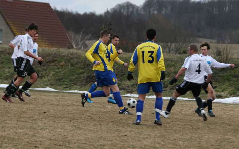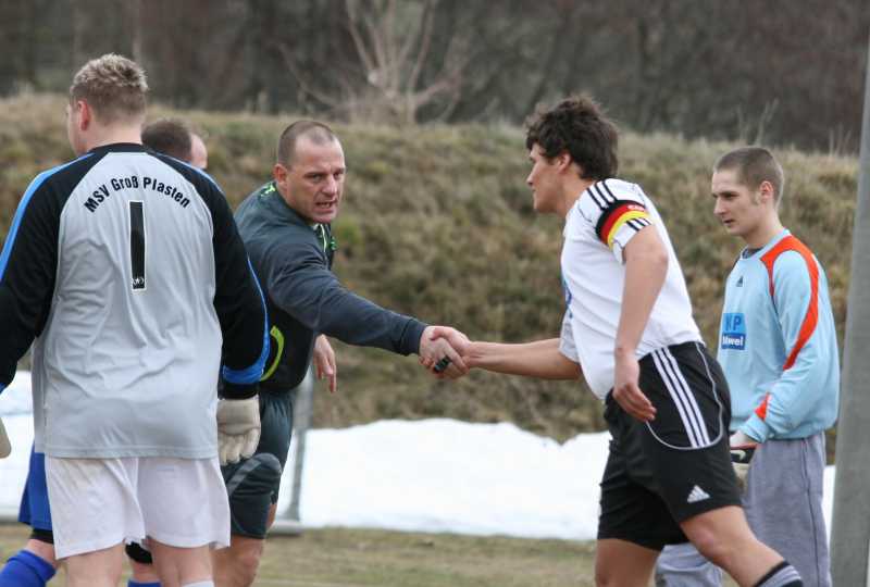 Ungemütliche Wetterbedingungen aber verhältnismäßig gute Platzbedingungen begleiteten das erste Fußballspiel im Jahr 2010 in Groß Plasten. Ein Lob gilt den fleißigen Platz-"Arbeitern" in Diensten des MSV Groß Plasten. Die Platzverhältnisse waren jedenfalls nicht Schuld an den dürftigen fußballerischen Leistungen beider Mannschaften an diesem Tag.