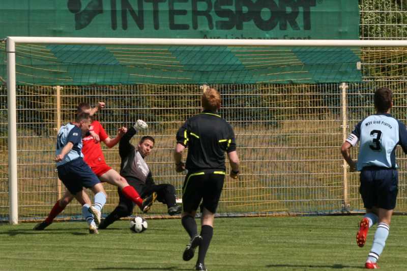 60 Minuten bestimmte der MSV das Geschehen. Es waren keine zwei Minuten gespielt als der kleine Kay Ruschin per Kopf eine Flanke von Steffen Zastrow verwertete. Auf der Gegenseite wurde David Oehlke im letzten Moment von Sven Marquardt geblockt (10.). Dann war wieder Plasten-Time. Kay Ruschin köpfte völlig freistehend über den Kasten (22.). Kurz darauf landete ein Oehlke-Kopfball am Pfosten des Plastener Tores(26.). In dem abwechlungsreichen Spiel vergab Thomas Werner nach glänzender Vorarbeit von Kay Ruschin die größte Chance. Das Tor war leer, die Entfernung 5 Meter, der Ball verhungerte allerdings auf dem Weg ins Tor (31.). Auf der Gegenseite vereitelte Christian Kuhnert den nächsten Hochkaräter von David Oehlke(35.). Den nächsten Plastener Angriff konnte Thomas Werner erfolgreich abschließen. Einen Freistoß von Sven Marquardt verwandelte er direkt (38.).