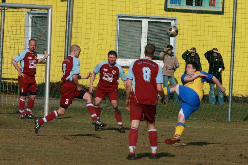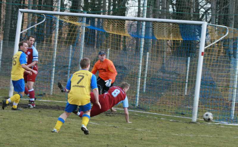 Nach drei Minuten wurde Daniel Friemann im Mittelfeld freigespielt. Er sah den im Strafraum freistehenden David Haupt, leider versprang der Ball und eine Riesenchance kam nicht zustande. Danach dominierte der Gastgeber vor allem in persona von Frank Herrmann. Mehrfach hatte er große Möglichkeiten sein Team in Führung zu bringen. In der 12. Minute stand er noch im Abseits, in der 20. lief er allein auf Kuhnert zu und der Ball versprang beim Torschuss. In der 25. war er schneller als Sven Marquardt und fand nach einer Flanke von seinem Bruder in Christian Kuhnert seinen Meister und eine Minute später verzog er kläglich erneut freistehend vor dem Tor. Auch nach 34 gespielten Minuten verzog der Pechvogel des Tages nach erneuter schöner Vorarbeit seines agilen Bruders auf der anderen Seite. Dazwischen hatten die Plastener noch Glück, dass ein 20-Meter-Knaller von Daniel Kowal knapp über die Latte zischte.
