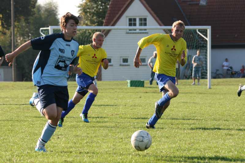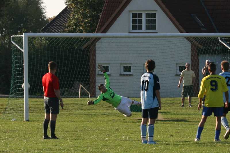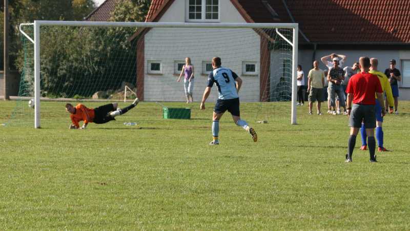 Nach einem Freistoßpfiff hat man kurz darauf wieder einmal zu lange diskutiert. Der Gegner führte schnell aus und Dirk Laeven hatte keine Chance gegen den allein auf ihn zulaufenden Knodlhans(69.). Kurz darauf hatte der beste Wokener Tobias Lüdtke, den die Plastener Abwehr nie in den Griff bekommen hat, die Riesenchance zum Ausgleich. Er schob den Ball knapp am langen Pfosten vorbei. Als in der 75. Minute der beste Plastener Kay Ruschin vom letzten Mann der Wokener von den Beinen geholt wurde, hatte der Wokerner Robert Schuster alles richtig gemacht. Er flog zwar vom Platz, hatte aber dadurch eine 100%ige Plastener Chance zunichte gemacht. Was er nicht wissen konnte war, dass seine Mannschaftskameraden sich über ihre Personalstärke überhaupt keine Gedanken gemacht haben und weiter mit langen Bällen in den Plastener Strafraum ihre Chance gesucht haben. Sie wurden in der zweiten Minute der Nachspielzeit dafür belohnt. Zwei Plastener Verteidiger nahmen einen Wokerner Stürmer in die Mangel. Den fälligen Elfmeter verandelte der Wokener Kapitän Bartz sicher. |