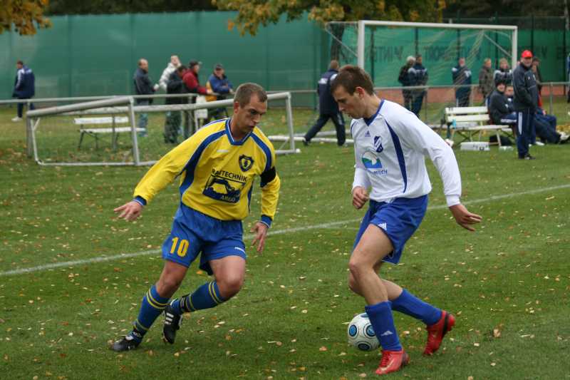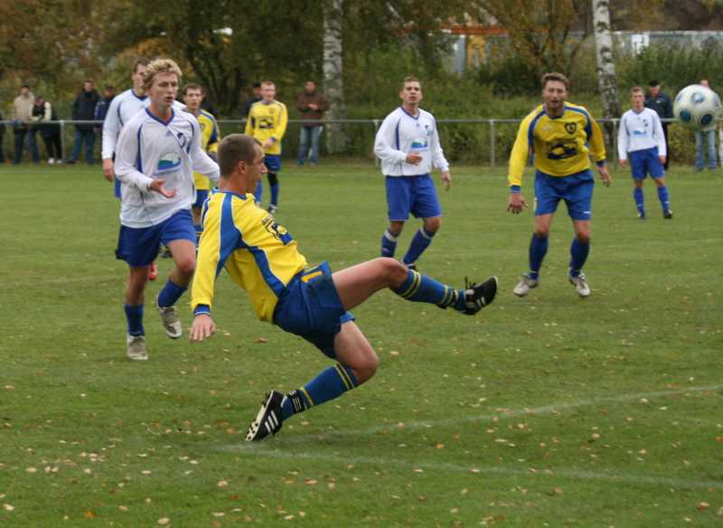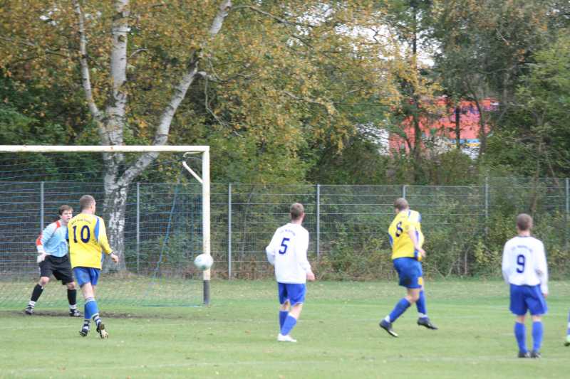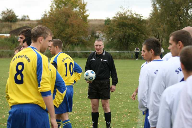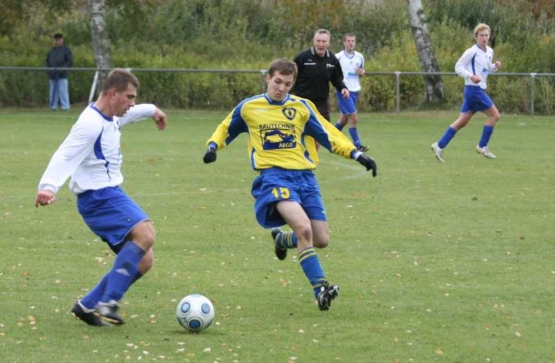 Alle diese unnötigen Diskussionen hatten aber nichts mit dem Ausgang des Spiels zu tun. Zwanzig Minuten vor Ende des Spiels konnte man endlich die Tabellensituation auch auf dem Platz wieder erkennen. Der Tabellenzweite aus Groß Plasten zeigte jetzt seine spielerischen Vorteile und prompt wurde es gefährlich. Haupt und Evert per Doppelpass brachten Kay Ruschin in beste Schussposition. Diesmal landete der Ball noch einen halben Meter neben dem Pfosten. Dann legte Martin Evert endlich seine Zurückhaltung gegen die ehemaligen Kollegen ab und setzte sich in der Sturmmmitte gegen zwei Abwehrspieler und Torwart Schultze durch und verwandelte aus spitzem Winkel zur verdienten 2:1 Führung der Plastener. Auch beim entscheidenden 3:1 war Evert der Ausgangspunkt. Er setzte sich gegen zwei Gegenspieler im zentralen Mittelfeld durch, passte auf den routinierten, links postierten Danny Strübing, der direkt auf Kay Ruschin passte. Der kleine nimmermüde Stürmer verwandelte diesen glänzenden Angriffszug volley zum Siegestreffer der Plastener.