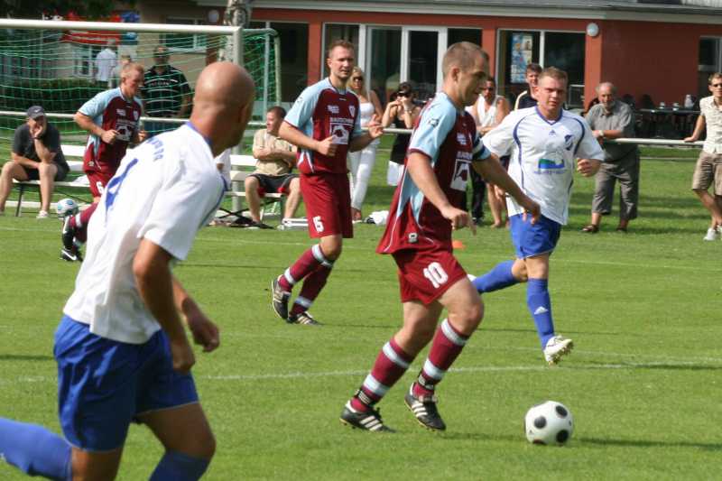 Vor dem Spiel zeigten die ehemaligen Mannschaftskameraden von Henning Voß, dass ein Vereinswechsel die persönlichen Kontakte nicht beeinflussen muss. Die herzliche Begrüßung (siehe Bilder) spricht Bände. Das Spiel lief trotz der vielen fehlenden Spieler ( Kay Ruschin - Feldlager bei der Bundeswehr, Hannes Bauer - Nasenbeinbruch, Nils Haese - Sprunggelenksverletzung, Ricardo Twieg, Sven Marquardt - verhindert) aus MSV-Sicht unerwartet positiv. Schon nach zehn Minuten erzielten die bis dato überlegenen Plastener die frühe Führung. Nach einer schönen Kombination ausgehend von Ronny Köppe über den MSV Spielmacher Andreas Dreyer verwandelte Martin Evert vom linken Fünfereck. Der Warener Torhüter Böhme musste den Ball durch die Beine passieren lassen. Dem MSV war's egal und drückte weiter auf eine Resultatsverbesserung, die Danny Strübing kurz vor seiner Verletzung auf dem Fuß hatte. Der Außenristschuss nach glänzendem Anspiel vom überragenden Plastener Kapitän David Haupt, der die in den Vorbereitungsspielen aufgetretene Defensivlücke mit seiner Erfahrung garnicht erst entstehen ließ, zischte um Zentimeter am langen Pfosten vorbei.