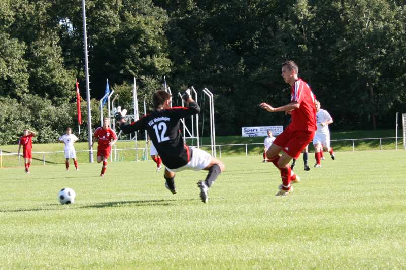 Das Spiel begann, wie in der letzten Woche. Der Gegner stellte sich erwartungsgemäß hinten rein, wartete auf die Möglichkeiten zu Konterangriffen und 09 drängte auf eine frühe Führung. Die ersten Chancen ließen nicht auf sich warten. David Schawaller knallte den Ball nach schöner Vorarbeit von Jens Aepinus und Erik Gaedeke an die hintere Torstange(3.). Zehn Minuten später setzte Erik Gaedeke einen Kopfball nach Aepinus-Ecke knapp über die Latte. Nur einmal musste Stefan Metelman sein Können zeigen. In der 21. Minute pariert er gegen den allein durch die unsortierte Warener Abwehr spazierenden Karsten Schmidt.