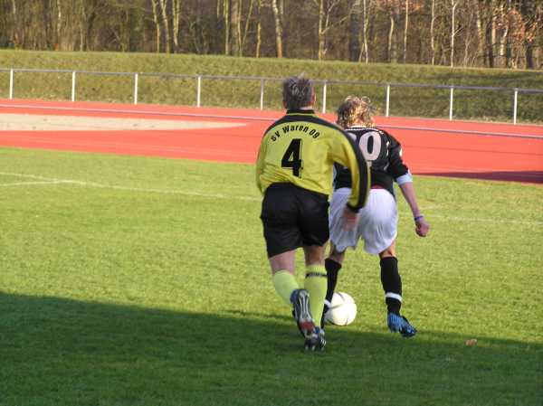 Nach dem Wechsel ließen es die Warener dann ruhiger angehen. In der 49 min., 52 min. und 55 min. erzielten zweimal T. Seidel und abermals C. Görtz die Tore zur 8:0-Führung. Nach diesen Treffern schalteten die Warener einen Gang zurück und die Gastgeber kamen zu einigen kleineren Möglichkeiten, die B. Wegener im Tor der Warener zunichte machte. In der 80 min. gelang den Gastgebern nach einer Nachlässigkeit in der Warener Hintermannschaft der Ehrentreffer zum 1:8.