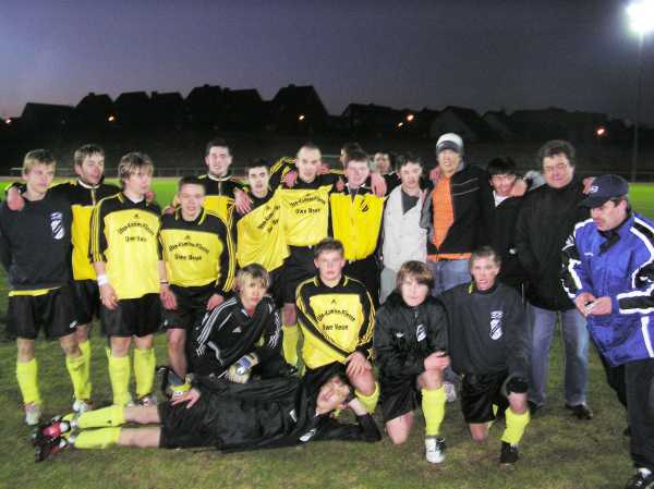 Die 09-Schützlinge nahmen von Beginn der Partie das Heft des Handels in die Hand und zeigten den Gastgebern, wer der Herr auf dem Platz ist. Folgerichtig ging man auch in der 18 min. durch einen 20 m Schuss von M. Mrowka, nach Pass von C. Görtz in Führung. Bereits 10 Minuten später hatte T. Reichau nach einer guten Kombination von Voß ausgehend über Görtz und Schwager das 2:0 auf dem Fuß, scheiterte aber am Torhüter der Gastgeber. Nach dieser Chance, waren die Warener für einige Minuten völlig von Rolle und kassierten auch überraschend den Ausgleich in der 33 min. Doch durch dieses Tor wurden die Warener wieder wachgerüttelt und gingen nach einer Flanke von C. Görtz und einer Verlängerung von D. Penak auf T. Schwager in der 37 min. erneut in Führung. Die Gastgeber waren auch der Pause auf den Ausgleich bemüht, konnten aber die 09-Jungs nie ernsthaft in Gefahr bringen. In der 56 min. gelang dann M. Mrowka, mit seinem zweiten Treffer, nach Ecke von T. Schwager das 3:1. Nun ließen es die Warener etwas ruhiger angehen, kontrollierten aber jederzeit das Spiel. In der 70 min. gelang C. Görtz wiederum nach Ecke von T. Schwager per Kopf das 4:1 für die Warener. Im Gefühl des sicheren Sieges ließen die Warener die Zügel noch weiter schleifen und nach einem groben Abwehrschnitzer in 72 min. verkürzten die Gastgeber auf 2:4.