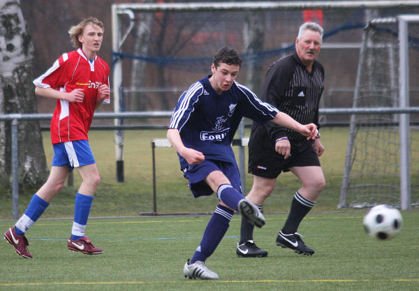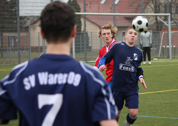 So begannen die Warener sehr ordentlich die Partie und hätten schon eine Minute nach Anpfiff in Führung gehen können, nein, sogar müssen. Aus sehr guter Position am Sechszehner, ging der Torschuß von M.Krolikowski knapp am rechten Pfosten vorbei. Nach dieser Großchance wurden die Offensivbemühungen offensichtlich eingestellt und durch etliche Unkonzentriertheiten und Abspielfehler im Mittelfeld dümpelte das Spiel so vor sich hin. Auch dem Gast aus Stralsund viel in dieser Phase nicht viel ein, kam jedoch einige male, aufgrund der bis dahin schwachen linken Abwehrseite bis zur Grundlinie durch und versuchte über aussen die Bälle vor das Warener Tor zu befördern. Die zweite Möglichkeit die Führung zu erzielen hatte der SV Waren 09 in der 12.Minute. C. Heinz war durchgestartet, der Pass aus dem Mittelfeld jedoch etwas ungenau bzw. zu weit.