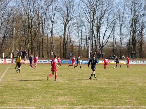 Nach dem ersten Sieg im Jahre 2003 fuhr unsere Mannschaft zu einem, wie das Hinspiel gezeigt hat, unbequemen Gegner nach Greifswald. Auf einer schönen Anlage waren leider sehr wenig einheimische Zuschauer zu sehen, so dass der Warener Anhang in der ersten Halbzeit das deutliche akustische Übergewicht erzielen konnte. Die Mannschaft ließ sich nicht lumpen und bot dem Publikum in der ersten Halbzeit ähnlich guten Fußball, wie zuletzt gesehen gegen Warnemünde. Die logische Folge war ein schönes Tor von Andy Purlinski, der volley aus 13 m Entfernung verwandelte. Weitere Chancen, wie z.B. vom derzeit völlig neben sich stehenden Matvij Nykolaychuk, blieben wie gewohnt ungenutzt. Glück hatte unsere Manschaft in der 35. Minute, als die Greifswalder mehrfach die Möglichkeit zum Ausgleich ausließen. Höhepunkt war ein Schuss auf das leere Warener Tor, der Ball ging aber vom Fünfer-Eck geschossen noch am Tor vorbei! Bis zur Pause passierte nichts mehr. Die Führung war mehr als verdient, aber zu niedrig ausgefallen.