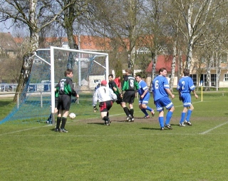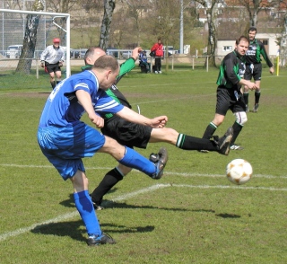 Beide Team's zeigen vollen Einsatz. Im Bild F. Knodel, der Ball ist aber schon weg. |