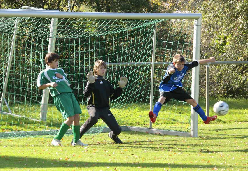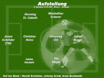 Nun wurden die Warener wach, erhöhten das Tempo und kamen selbst gefährlich vor das gegnerische Gehäuse. In der 12.Minute hätte es Strafstoß für Waren geben müssen, da Maxcimilian Scherer im neun Meterraum gefoult wurde. Stattdessen gab es Freisstoß, der zu unplaziert ausgeführt wurde. In der Folgezeit vergaben die Warener gleich reihenweise weitere Möglichkeiten und hätten mittlerweile den Ausgleich verdient gehabt. Dieser fiel dann endlich in der 26.Minute nach einem herrlichen Sololauf von Jarmo Keckert (Sonderlob für seine Leistung!!!). Den Treffer markierte Johannes Ott nachdem Jarmo vorm Tor den Pass in dessen Lauf spielte.