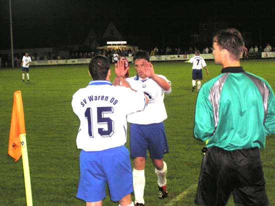 Nach der Pause war eine völlig andere Warener Elf zu sehen. Gleich zu Beginn spielte Thomas Duggert steil auf Rene Drabner, der den letzten Gegenspieler mit Beinschuss stehen ließ und allein aufs Tor zulief. Im letzten Moment wurde er noch am Torschuss gehindert. Dann begann die große Zeit des Ex-Malchowers Rene Röpcke. Erst verwandelte er eine butterweiche Flanke von Thomas Duggert, der von Andy Purlinski in Szene gesetzt wurde, dann schlug er einen herrlichen Diagonalpass über 60 Meter auf Andy Purlinski, der "nur" noch den Ball über Woitkowski zum 3:1 lupfen musste. Drei Minuten später stand er in der eigenen Abwehr goldrichtig und rettete für den schon geschlagenen Thomas Vierow auf der Linie.