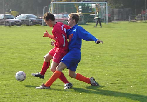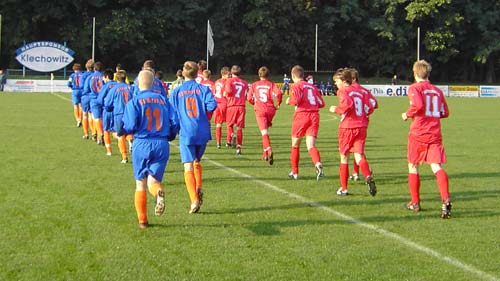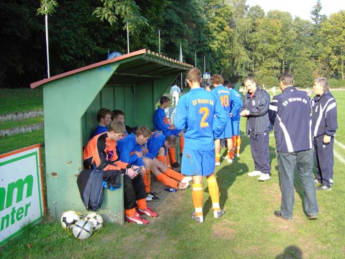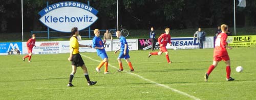 Das Spiel begann recht ausgeglichen, wobei man aber schon die Unsicherheiten in der Warener Defensive erkannte. Daher kam Rostock immer besser ins Spiel und nach einer Flanke konnte der Gastgeber zum 1:0 in der 19. Minute einköpfen, wobei der Stürmer nicht bedrängt wurde. Nur 2 Minuten später sah die Hintermannschaft (Bauer, Durke) aus Waren erneut nicht gut aus, sodass das 2:0 fiel. In der 26. Minute verlor der B-Junior Böhme den Ball in der Vorwärtsbewegung und der anschließende Konter wurde sicher verwertet, als ein Stürmer frei aufs Tor lief und Torwart Sommer keine Chance ließ. Nun gelang es 09 auch etwas Druck zu machen und das Spiel offener zu gestalten, wodurch einige Chancen herausgespielt wurden. 2 Schüsse Fiedels konnte der Rostocker Torwart halten und einen Schuss Peschels an die Latte lenken. Mrowka kam in der 43. Minute im Strafraum frei an den Ball und schoss diesen zum 3:1 ins Tor.
