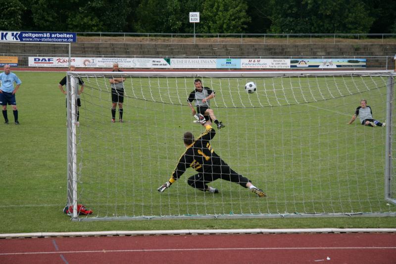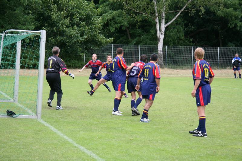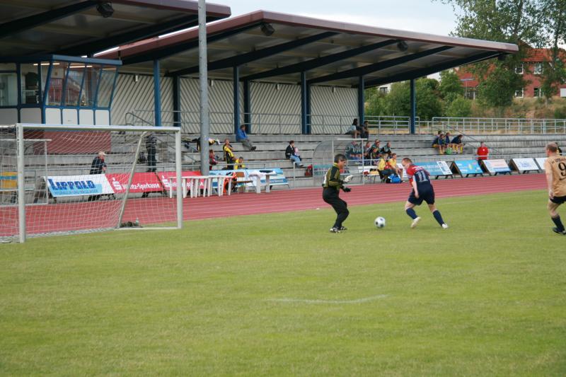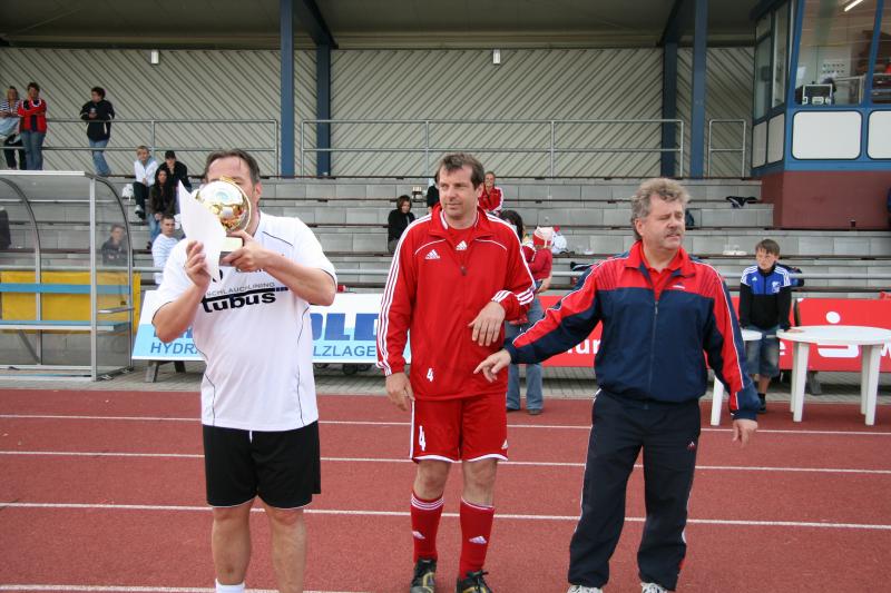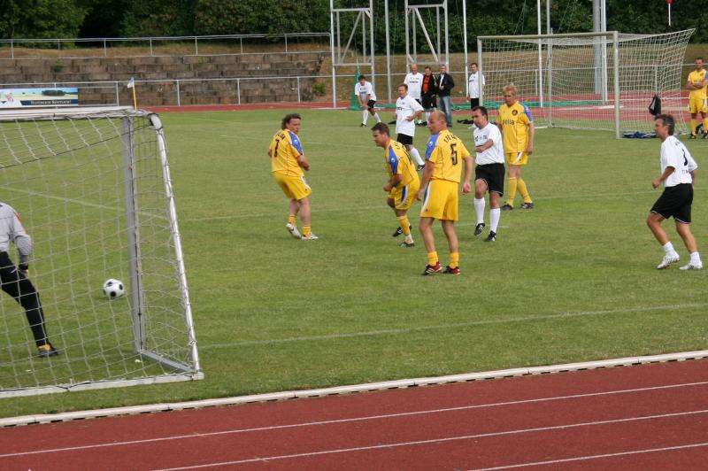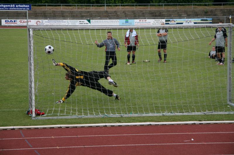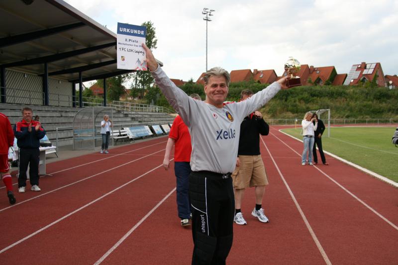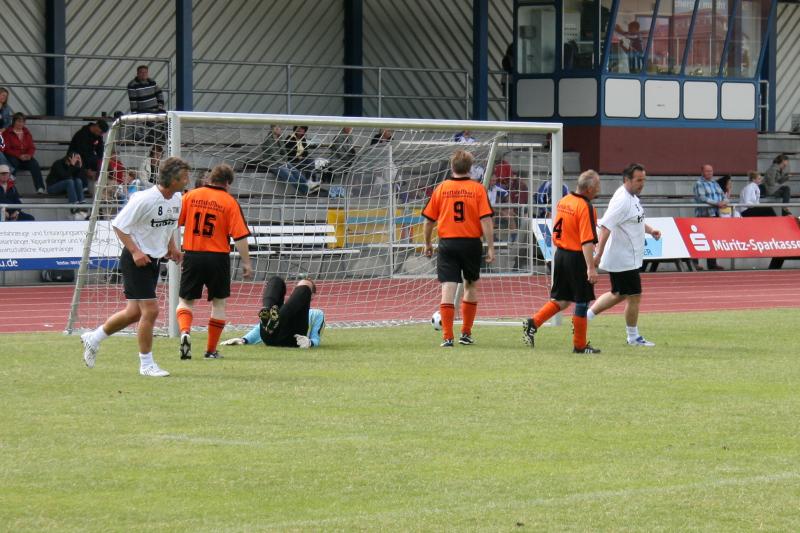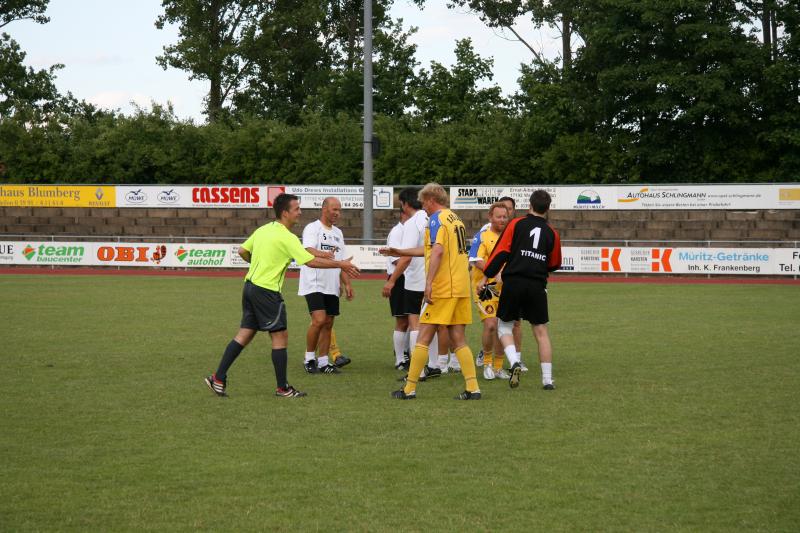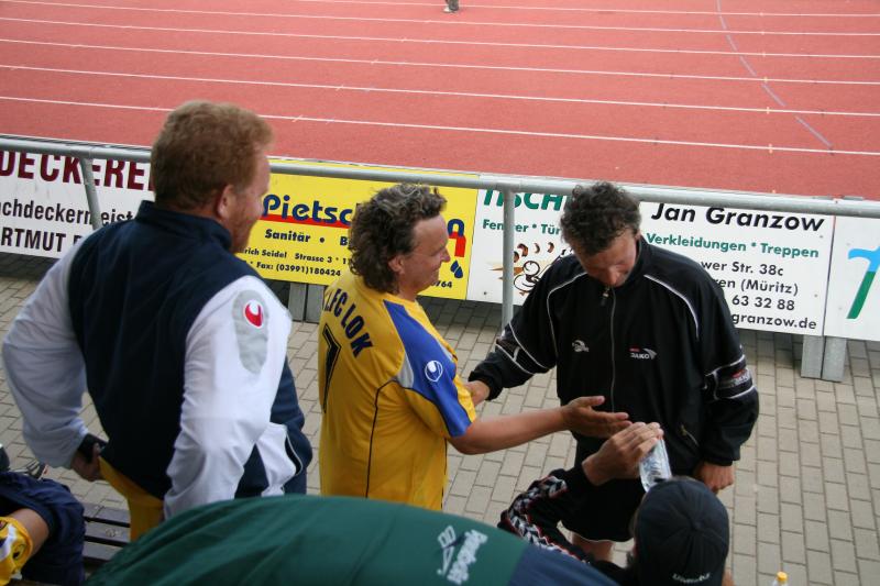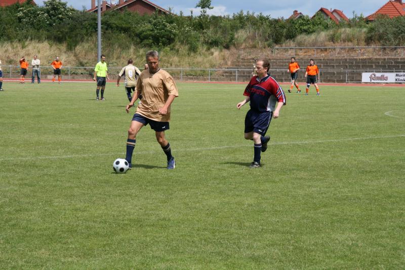 Bei herrlichem Fußballwetter konnte jetzt das "Traumfinale" stattfinden. Struppi heizte die Stimmung auf, sogar Laola wurde auf der Tribüne vorgeführt. Auf dem Platz hatten die etwas jüngeren Rostocker gegen die mit den ehemaligen Nationalspielern Frank Baum und Heiko Scholz angetretenden Leipzigern den etwas längeren Atem. Immer wieder angetrieben von Hilmar Weilandt schickten sie ihren alten Rivalen durch Tore von Ralf Kleiminger und Mayk Bullerjahn mit 2:0 nach Hause und konnten damit den Vorjahreserfolg wiederholen.