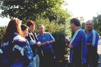 Gestern noch Bambinos und heute schon im aktiven Spielbetrieb. Trainer Meier bei der Einweisung vor einem Punktspiel. Er hat gute Zuhörer. Hoffentlich können sie seine Hinweise beim Spiel umsetzen |