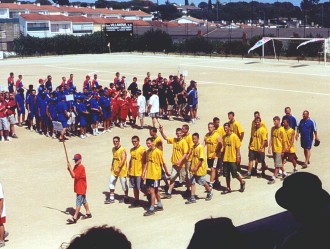 Im Bild der Einmarsch unserer Sportler. Und das wie gesagt bei rund 36°C bei fast völliger Windstille |