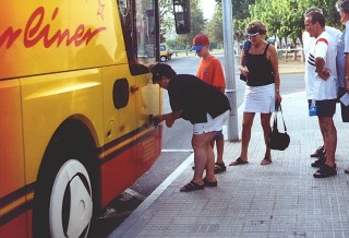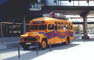 Ich meine, dass es für jeden Fußballer, der nach Spanien und dazu noch nach Barcelone fährt, selbstverständlich ist, das Stadion des 1. FC Barcelona zu besuchen. Im Bild sehen wir im Museumsbereich den ersten Bus dieses großartigen Vereines. |