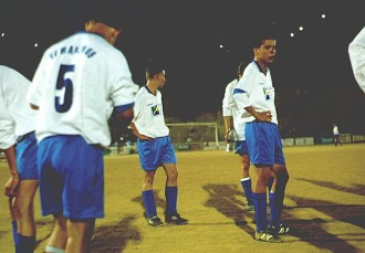 Für die meisten unserer Spieler war das ihr erstes Spiel unter Flutlicht. Man mußte sich erst an diese Situation gewöhnen |