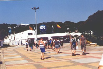 Eröffnungsveranstaltung an. Trotzdem wollten wir auf dieses Erinnerungsfoto nicht verzichten. Der Eingang zum "CAMP MUNCIPAL FUTBOL" |