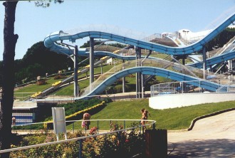 In diesem Bild sehen wir eine der Atraktionen dieses Erholungsparkes. Diverse andere Anlagen, Rutschen und Bäder machen den Aufenthalt sehr angenehm. Für die gastronomische Betreuung gibt es gleichfalls viele Möglichkeiten. |
