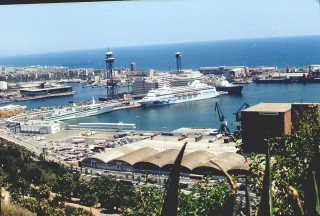 Traumschiff Aida. Übrigens kann man vom Hafen mit einer Seibahn über Barcelona hinweg zu diesem schönen Aussichtspunkt von Barcelona gelingen. |
