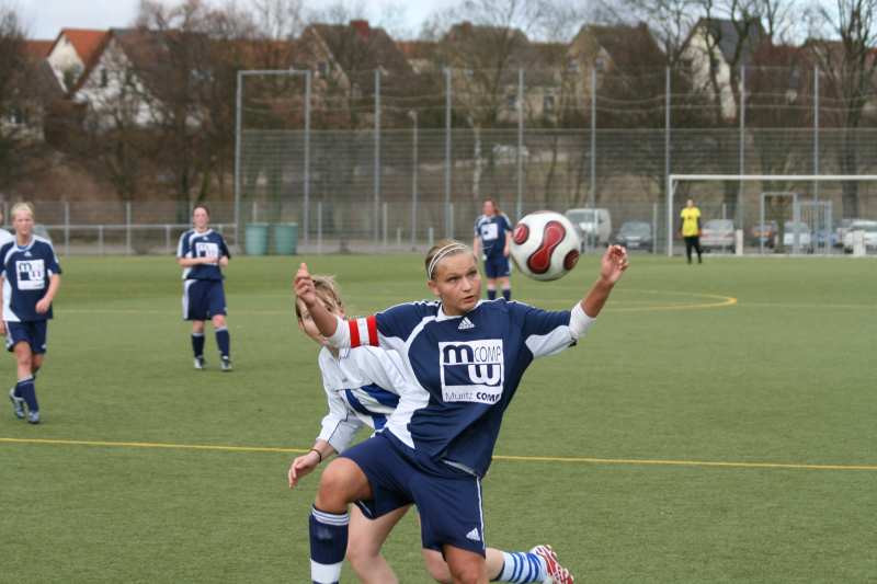 Zwei Minuten später folgte der gleiche Spielzug. Nur waren diesmal Sabrina Genz und Anika Bernitt daran beteiligt. Leider wurde Anika doch noch am Torschuss gehindert. So blieb es weiterhin beim 1:0. Nach einer Ecke von Anne Krenzel köpfte Anica Lekat aus 8 m auf Tor. Dieser Kopfball konnte von der Gästetorhüterin gerade noch von der Linie gekratzt werden. Dieselbe Spielerin versuchte es nur eine Minute später aus der Distanz. Leider ging der Ball knapp am Tor vorbei. Zu diesem Zeitpunkt gab es Chancen im Minutentakt. Lisa Barner schoss in der 64. min, aus 6 m, den Torwart an. Ein Freistoss von Claudia Perleberg ging in der 66. min knapp am Gehäuse der Gäste vorbei. In der 75. min dann ein Lebenszeichen der Rostockerinnen. Die Zuteilung ging etwas verloren, und so kamen die Gäste mit einem Kopfball aus 6 m fast zum Ausgleich. Diese Möglichkeit blieb zum Glück ungenutzt. Und es war auch die einzige erwähnenswerte Chance der Gegnerinnen in der 2. Hälfte. Cindy Beitz hatte an diesem Tag ihre Abwehr ansonsten im Griff. Katrin Zilz, Martina Genz und Nicole Bauer hatten alles im Griff. Annika Paeth hatte im Tor einen sehr ruhigen Nachmittag. Am Ende der Partie gab es noch eine weitere Möglichkeit der Müritzerinnen. Claudia Perleberg erkämpfte sich den Ball im linken Mittelfeld. So lief sie allein auf Tor zu. Und zur Freude des SV Waren 09 blieb sie cool und schob in der 87. min zum viel umjubelten und verdienten 2:0 ein. Das Spiel war gelaufen. Kurze Zeit später beendete der Schiedsrichter Michael Brenn aus Jürgenstorf die Partie.