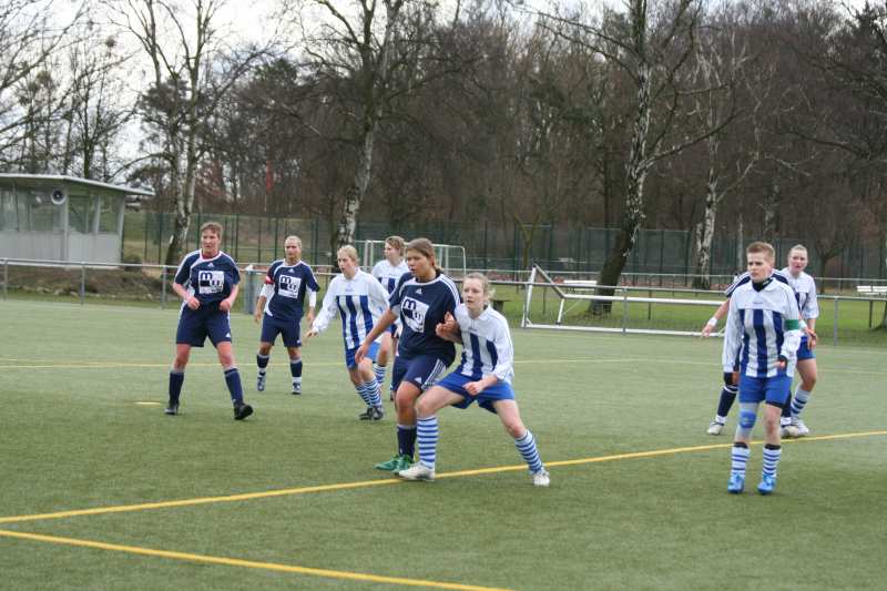 Schon im Gegenzug hätten die Gäste nach einem Konter fast das 0:1 erzielt. Zum Glück schoss die Rostockerin aus gut 16 m, am langen Pfosten vorbei. Dies war wohl dann der erhoffte Weckruf für die Platzherren. Denn nun übernahmen die Frauen von der Müritz immer mehr das Spielgeschehen. Der Gegner wurde früh gestört. Einen kontrollierten Spielaufbau auf Seiten der Gäste gab es nicht mehr. Anica Lekat versuchte es in der 33. und 35. min jeweils mit einem Fernschuss aus 20 m. Noch konnte kein Kapital aus der Überlegenheit herausgeschlagen werden. So ging es mit einem 0:0 in die Halbzeitpause.