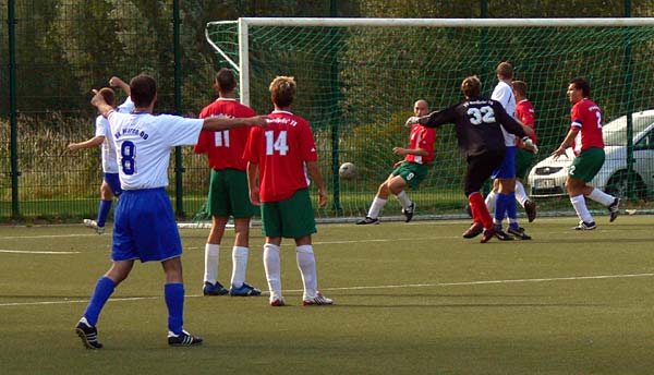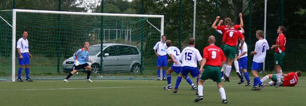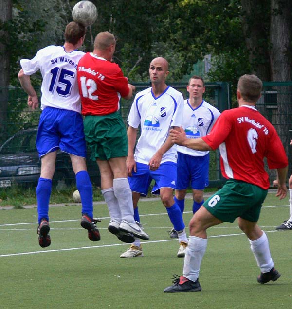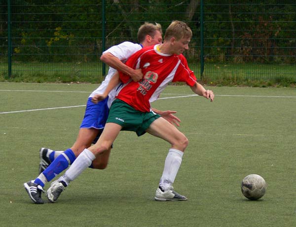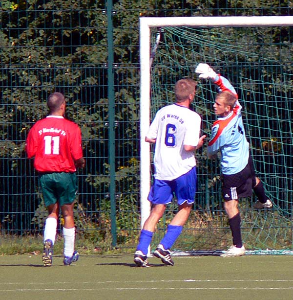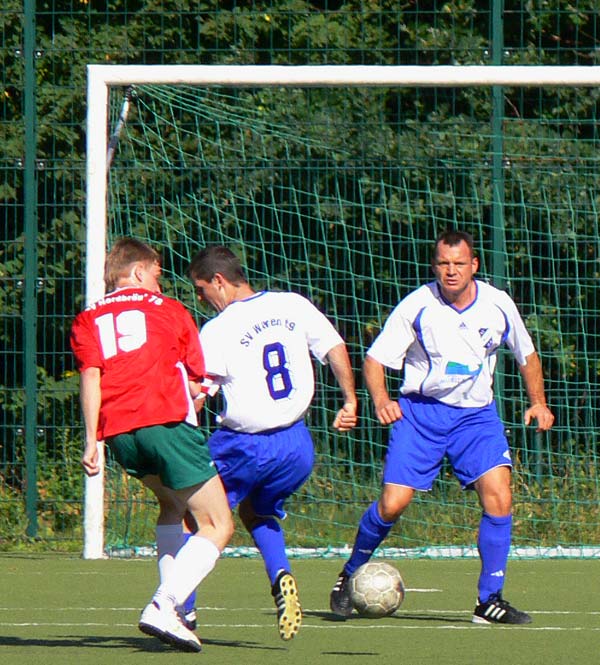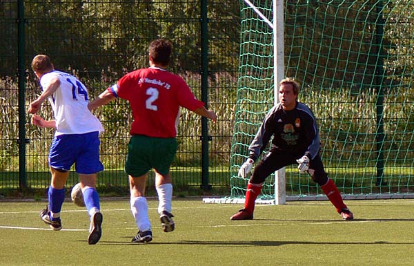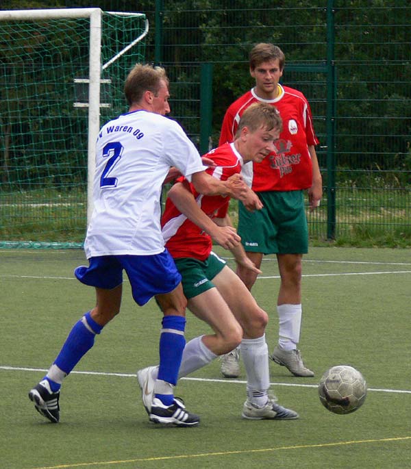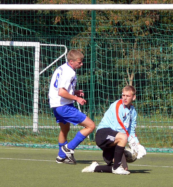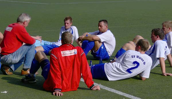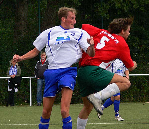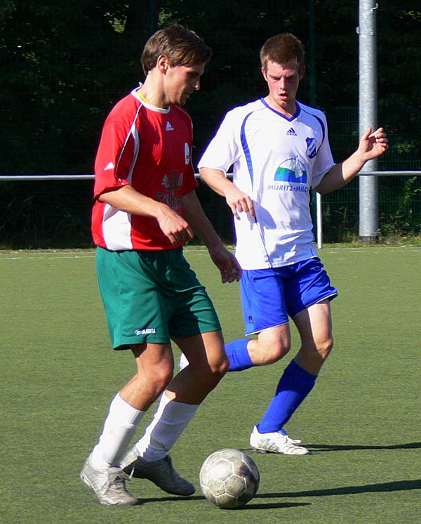 In der ersten Halbzeit strahlte der Gast von der Müritz etwas mehr Torgefahr aus. In der 22. Minute fiel auch das 0:1 für 09. Einen Freistoß von Marco Siegfried köpfte Hannes Bauer quer, Martin Evert verlängerte per Kopf kurz vor dem heraustürmenden Torwart und Robert Friske lief hinten durch und schob mit dem rechten Außenrist ins leere Tor zur Führung ein. Die einzig noch erwähnenswerte Chance für 09 in der ersten Halbzeit war von Martin Evert, dessen Schuss aber der Torwart parierte. Der Gastgeber machte größtenteils das Spiel, aber hatte nur eine richtig gute Möglichkeit kurz vor dem Pausenpfiff. Nach einer schönen Flanke von rechts kam ein Neubrandenburger völlig freistehend zum Kopfball, verzog aber zum Glück für die 09er völlig.