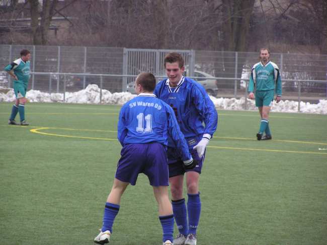 Zwei Einzelaktionen von Mario Klemmer reichten zum verdienten Sieg gegen kämpferische Gäste aus Faulenrost. Die Faulenroster versuchten mit großem Laufpensum das Warener Spiel zu zerstören. Das gelang ihnen über weite Strecken und die Chancen des Warener Nachwuchsteams hielten sich in Grenzen. Nach vorn hatten die Gäste, bei denen sich der Kapitän Michael Nehls vergebens mühte, Linie ins Spiel zu bringen, wenig zu bieten und Thomas Vierow konnte einen relativ ruhigen Nachmittag im Warener Kasten verleben.