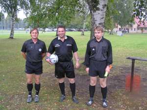 Zeigten eine souveräne Leistung: Schiedsrichter Brenn (Jürgenstorf) und seine Assistenten Fistler (Faulenrost) und Held (Rosenow)