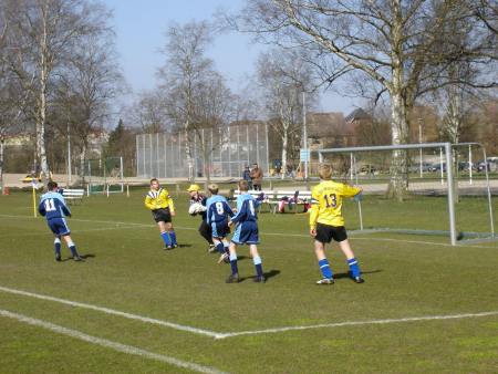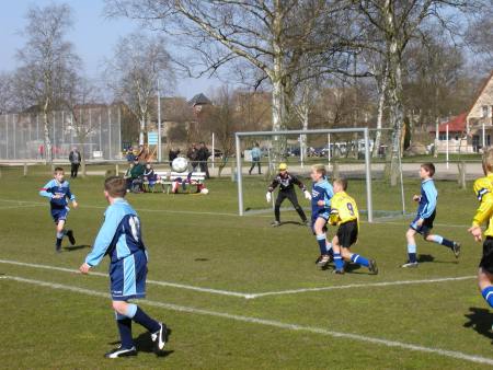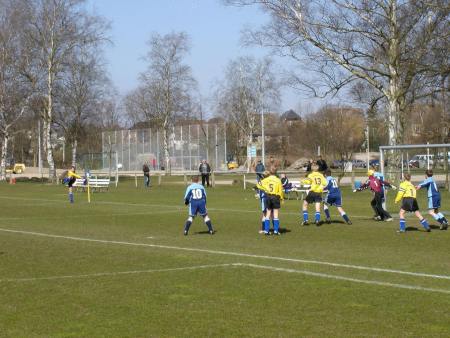 (GW) Die Warener Jungs konnten ihre frühe Führung durch Sebastian Dohnow leider nicht ausbauen. Ein straffer Kopfball von Philipp Buck knallte nur an die Latte. Dagegen landete ein Fernschuß von Alexander Voß im rechten Dreiangel zum Ausgleich. Danach neutralisierten sich die Aktionen auf dem Spielfeld. In der zweiten Halbzeit fehlte dem SV 09 etwas Glück bei Latten- und Pfostenschüssen. Insgesamt dann doch ein gerechtes Unentschieden, denn der SV 09 spielte zu überhastet ohne druckvolle Aktionen auf das gegnerische Tor.