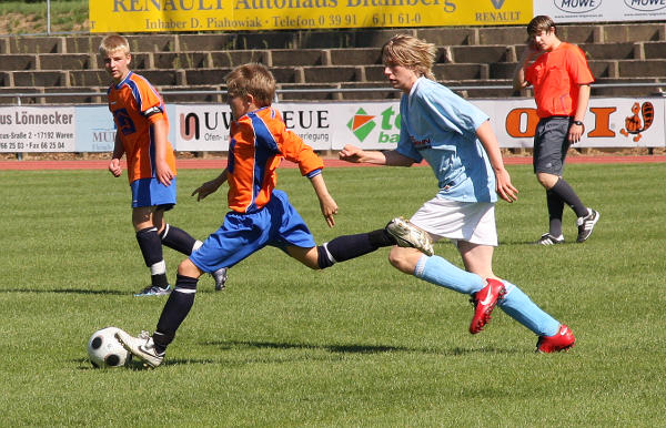 Von den Warener Kickern war bis dato und auch in den weiteren Minuten recht wenig zu sehen und die Angriffsbemühungen wurden durch gutes Stellungsspiel und aggresives Zeikampfverhalten des Gegners zu nichte gemacht.