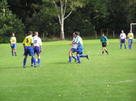 Im Kreisderby gegen den MSV Groß Plasten, dass erstmals von einer überzeugenden Schiedsrichterin (Diana Räder) geleitet wurde, musste Wiegand Schalow auf zahlreiche Spieler verzichten. Insgesamt standen 13 Spieler aus dem Männerbereich nicht zur Verfügung. Trotzdem konnte die Mannschaft das Spiel in der ersten Halbzeit ausgeglichen gestalten. Umsichtig dirigierte Routinier Jürgen Parlow die Abwehr und ließ die Plastener nicht ins Spiel kommen. Nur einmal verlor die Abwehr die Übersicht. Nach einem Freistoß von Marco Siegfried standen drei Plastener an der Strafraumgrenze frei, so dass Arek Stepin mit einem straffen Schuss keine Mühe hatte zum 1:0 zu verwandeln. Bis zur Pause passierte kaum noch etwas. Beide Mannschaften konnten sich gegen die Abwehrreihen nicht durchsetzen und es blieb beim knappen Vorsprung der Plastener.