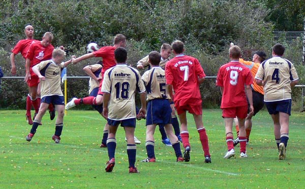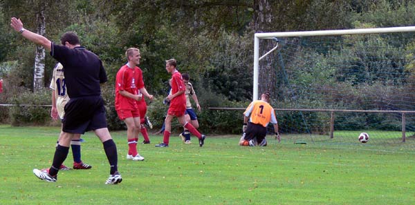9 Minuten nach der Halbzeit gelang Thomas Zühlcke das 5:0. Danach verlor 09 die Ordnung und die Gäste kamen besser ins Spiel und hatten ein paar Möglichkeiten. Die größte Chance für sie war ein Lattentreffer per guten Lupfer und kläglich vergebenen Nachschuss. Doch dann besann sich der Gastgeber wieder mehr aufs kombinieren. Der Doppelschlag durch Thomas Zühlcke und Chris Görtz zum 7:0 in der 72./73.Minute und ein abgefälschter Freistoß von Marco Siegfried(80.Minute) stellten das 8:0 her. Weitere zum Teil sehr gute Gelegenheiten wurden ausgelassen, sodass das Endergebnis nicht zweistellig wurde.
