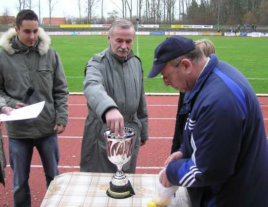In der Pause des Pokalspiels wurden die Viertelfinalspiele des Landespokals (Spieltermin 16.12.06) ausgelost. Der Wirtschaftsminister des Landes Mecklenburg-Vorpommerns Jürgen Seidel und der Mannschaftskapitän der B-Juniorenmannschaft der Warener Mädchen Inken Pilz zogen die Lose. Schlimmer konnte es für den Sieger der hiesigen Partie nicht kommen. Gegner kurz vor Weihnachten in einem Auswärtsspiel soll der Oberligist FC Schönberg sein. In der zweiten Halbzeit hatte man dann auch den Eindruck, dass sich keine Mannschaft diesen schier aussichtslosen Fight antun wollte. Kaum zwingende Aktionen, das Spiel plätscherte 20 Minuten so vor sich hin.