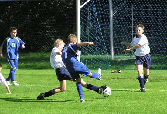 Unser Team als Aufsteiger zur Landesliga befindet sich noch im ständigen Lernprozeß des Großfeldfußball-ABC. Von der Kreisliga Kleinfeld zur LL Großfeld, die Bezirksliga überspringend,ist ein Riesenspagat, der uns noch viel Anstrengungen bereiten wird, damit wir uns "Zerrungen" holen. Gegen SV Hafen hätten wir schon frühzeitig klar in Führung gehen müssen. Zwei "Hundertprozentige" wurden vertan. Aber stattdessen fällt uns bei einer Ecke der Ball ins eigene Tor. Verfehlte Torchancen werden halt bestraft. Bis zur halbzeit konnten wir das Ergebnis zum Glück zu unseren Gunsten wieder drehen. Nach der Pause die Führung sogar ausbauen. Alles schien eigentlich gelaufen, aber !!