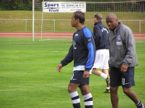 Gute Fußballkost blitzte allemal auf, auch wenn Marcelinho die Schwere der Aufgabe deutlich im Gesicht geschrieben stand. Seinen Torerfolg ließ er sich dennoch nicht nehmen. Nach fünf Fehlversuchen aus größerer Entfernung blitzte die Genialität des Berliner Paradiesvogels bei einem Freistoß aus 18 Metern auf. Als alle mit einem Lupfer über die gestellte Abwehr rechneten, knallte er den Ball an den Innenpfosten des langen Eck und fand Andreas Haase im Warener Tor, der mehrfach glänzend reagierte, auf dem falschen Fuß. Das 0:4 zur Pause stand fest und Marcelinho durfte in der Kabine bleiben.