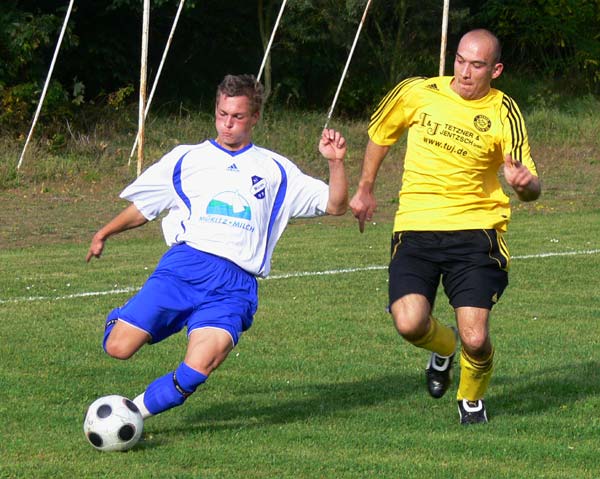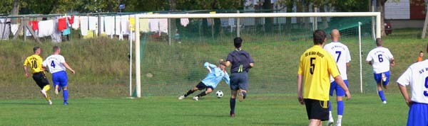Von Anfang an hatte 09 große Probleme mit den langen Bällen der Gastgeber und ließ sich mehrfach überrumpeln. So fiel dann auch das 1:0 für Hohen Wangelin. Sie hatten auch noch weitere gute Möglichkeiten, die aber ungenutzt blieben. Nun bekam Waren das Spiel etwas besser unter Kontrolle, hatte aber nur Chancen durch Weitschüsse, die alle am Tor vorbei gingen. Genau in dieser Phase fiel das 2:0. Glück hatten die Warener, dass die Pausenführung nicht noch höher ausfiel.Zum Beispiel liefen 2 gegnerische Stürmer frei auf den erneut im Tor stehenden Mittelfeldspieler Chris Görtz zu. Anstatt quer auf den Mitspieler zu legen, schoss der Angreifer jedoch am Tor vorbei.