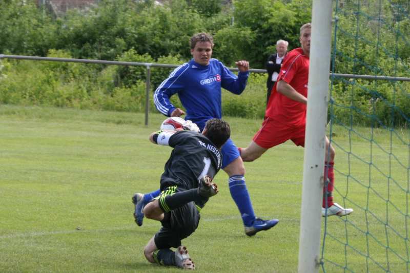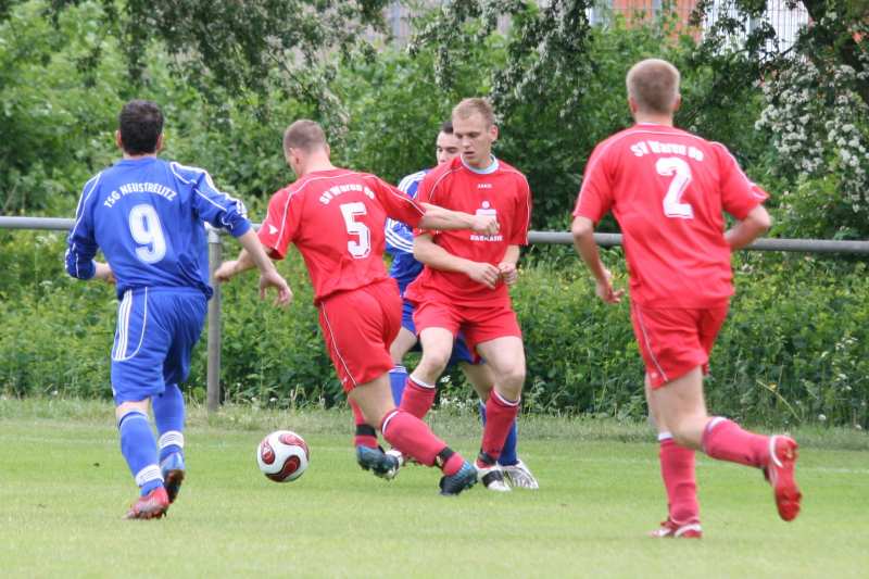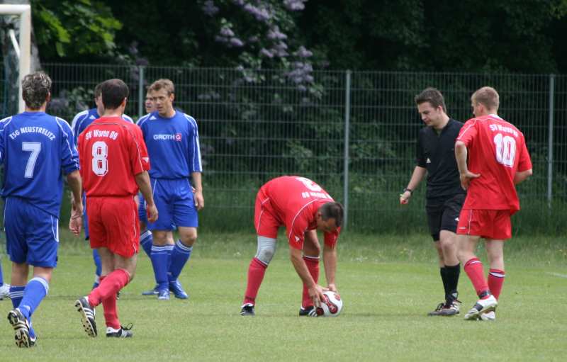 In der ersten Halbzeit passierte nicht viel. Zwei Halbchancen auf beiden Seiten wurden jeweils von der gegnerischen Defensive zunicht gemacht. Nach der Pause dominierte zunächst 09. Die größte Chance zum Führungsterffer vergab André Böhme nach glänzender Vorarbeit vom unermüdlich rackernden Chris Görtz. Aus 11 Metern schoss er dem guten Gästetorwart genau in die Arme. Ein weiterer vielversprechender Warener Angriff wurde dann zum Bumerang. Die abgewehrte Flanke nahm ein Neustrelitzer Stürmer auf, spielte Heiko Welz aus und passte anschließend quer zu Daniel Rausche, der nur den Fuß hinhalten musste, um den Siegtreffer zu erzielen. Die Warener versuchten auch weiterhin einen Treffer zu erzielen, der am heutigen Tage wieder einmal so weit entfernt war wie der Mond von der Erde. Bestes Beispiel war die Doppelchance in der 71. Minute von Daniel Reichau. Erst landete sein Kopfball am Pfosten, dann verzog er freistehend zentral im Strafraum vor dem Tor stehend. |