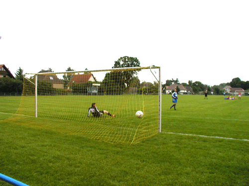 So kam es im Finale zum heißumkämpften Spiel der Ortsnachbarn aus dem Müritzkreis. Beide Mannschaften gingen in den ersten Minuten sehr engagiert zu Werke und der Schiedsrichter tat gut daran konsequent durchzugreifen. So sah der Warener Kapitän nach wiederholtem Foulspiel zurecht die Gelb-Rote Karte und musste den Platz verlassen. Bis zu diesem Zeitpunkt hatte unsere junge Mannschaft, die mit vielen Nachwuchsspielern antrat, dem Favoriten durchaus Paroli bieten können und selbst vielversprechende Angriffe initiert. Herausragende Leistungen boten dabei die Neuzugänge Rene Drabner und Thomas Vierow, der von der Turnierleitung als bester Torwart geehrt wurde. Auch Andy Purlinski, Manuel Heinsel, Nico Schwerin und Robert Schwinkendorf stellten sich schon in hervorragender Verfassung vor. Sie konnten aber nicht verhindern, das der Malchower SV kurz nach dem Platzverweis mit 1:0 in Führung ging. Der Schiedsrichter zeigte nach einem angeblichen Foul von Robert Schwinkendorf zur Verwunderung aller Warener Spieler und Anhänger auf den Elfmeterpunkt. Diese Chance ließen sich die Malchower nicht entgehen. Nach dem Führungstreffer war die Moral der Warener gebrochen, sie konnten nur noch ganz vereinzelt gefährliche Angriffe vortragen, der Malchower SV dagegen konnte aus einer leichten Konterstellung noch zweimal gefährlich vor dem glänzend haltenden Thomas Vierow auftauchen.