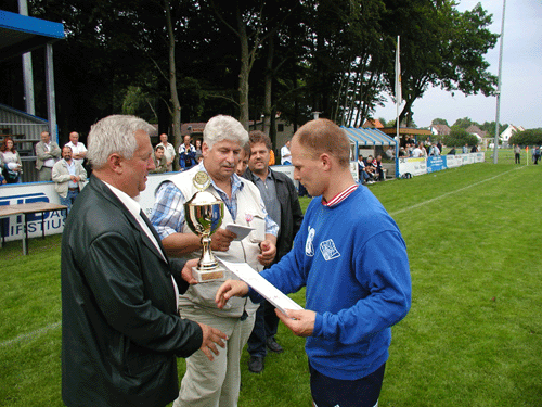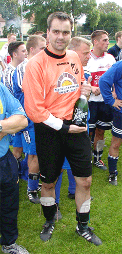 | Rene Putzar vom Malchower SV nimmt den Siegerpokal entgegen |