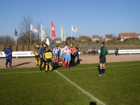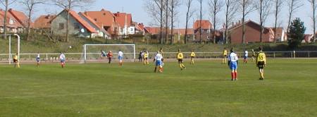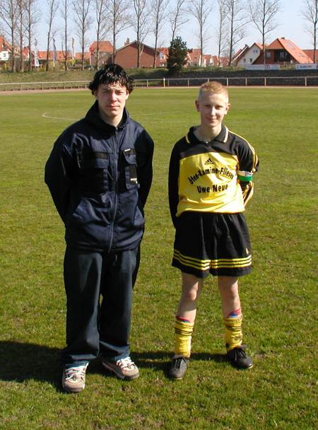 (gre)Bei strahlendem Sonnenschein kam der Tabellenletzte der Bezirksliga zum fälligen Punktspiel ins Warener Müritzstadion. Unsere C-Junioren wollten nach den letzten guten Leistungen einen klaren Sieg folgen lassen. Von Beginn an sollte das Tor des Gegners ins Visier genommen werden. Die guten Vorsätze konnten aber nicht in die Tat umgesetzt werden. Im Hinterkopf der Spieler war wohl doch eine Unterschätzung des Gegners vorhanden. Fehlender Kampfgeist und spielerische Mängel bei fast jedem Spieler ließen keinen Spielfluß aufkommen. Dass es trotzdem zu guten Chancen kam, war dann der sehr geringen Gegenwehr der Gäste zuzuschreiben. Der sonst so treffsichere Christopher Kowatsch tauchte dreimal freistehend vor dem Torwart auf, konnte den Ball aber nicht im Kasten unterbringen. Ein strammer Schuß von Tino Neue aus 15 m Entfernung brachte das 1:0. Einzig Thomas Fiedel konnte seine Leistungsstärke unter Beweis stellen. Seine Sprints auf der rechten Seite brachten immer Gefahr für das gegnerische Tor. So fiel auch das 2:0 nach einem zielstrebigen Sprint und konzentriertem Abschluß durch Thomas Fiedel.