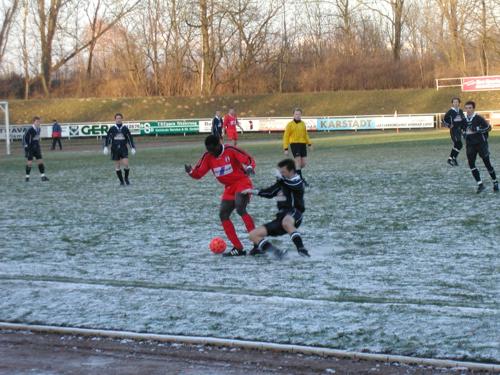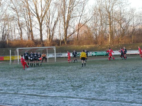 Auf hart gefrorenem Boden bei minus fünf Grad fand das letzte Punktspiel des SV Waren 09 im Wismarer Kurt-Bürger-Stadion statt. Alles andere als gute äußere Bedingungen für ein Spitzenspiel in der Verbandsliga. Die Wismarer fanden sich in der ersten Halbzeit deutlich besser mit den Bedingungen zurecht. Im Fünf-Minuten-Takt konnten die robusten und groß gewachsenen Spieler des FC Anker Wismar sich Großchancen erarbeiten. In der fünften Minute konnte Thomas Vierow vor einem allein durchgelaufenen Spieler des Gegners ebenso großartig klären, wie in der 12. Ein Kopfball in der 17. Minute knallte an den Pfosten. Für unsere Mannschaft war bis dato keine nennenswerte Chance zu verzeichnen. Es dauerte bis zur 32. Minute ehe Andre Schröder eine von Stefan Haase gut geschlagene Flanke fünf Meter vor dem Tor serviert bekam. Statt den Ball mit dem Kopf in das Tor zu befördern, entschloss er sich zu einem Schuss, der das Ziel leider verfehlte. Jetzt konnte unsere Mannschaft das Spiel etwas offener gestalten. Urplötzlich bekam Andy Purlinski im Fünfmeterraum freistehend den Ball vor die Füße, konnte die Chance aber ebenfalls nicht nutzen, der harte Platz ließ grüßen. Bis zur Pause hatten die Wismarer noch zwei Chancen, das 1:0 zu erzielen, die größte wurde aus drei Metern Entfernung mit einem Schuss über den Kasten versiebt. Bis zur Pause also viel Dusel für den SV Waren 09. Als gleich nach dem Wiederanpfiff die Wismarer ihre letzte Chance versiebten und sich ein Spieler des Gegners nach Ballwegschlagen völlig unnötig die Gelb-Rote Karte abholte, haderten die Heimzuschauer mit ihrer Mannschaft und der SV Waren 09 hatte das Geschehen im Griff. Die Wismarer fuhren nur noch gelegentlich ihre Konter, bei einem dieser Spielzüge brachte Nico Schwerin seinen Gegenspieler in einer ungefährlichen Zone, 25 Meter Torentfernung auf der rechten Seite fast an der Auslinie, zu Fall. Den fälligen Freistoß beförderten die Wismarer allerdings direkt in das Tor von Thomas Vierow. Der Ball flog an Freund und Feind vorbei seelenruhig ins Tor, ohne dass ein Spieler bzw. der Torwart eingriff. Es half nichts, dass der Gegner beste Chancen ausließ, jetzt wurde ihm das 1:0 geschenkt. Gleich nach dem Anstoß hatte Serhij Bohorodichenko die Gelegenheit, den Ausgleich zu erzielen. Seinen Schuss konnte der Wismarer Torwart gerade so entschärfen, der Abpraller fiel jedoch direkt vor die Füße des freistehenden Matvij Nikolaychuk, der den Ball aus 12 m Entfernung am leeren Tor vorbeischob. In den verbleibenden zwanzig Minuten verteidigten die sichtlich zufriedenen Wismarer ihren Vorsprung und konnten den auf Grund der Vielzahl der Chancen verdienten Sieg über die Zeit retten. Herausragende Spieler beim SV Waren 09 waren ohne Zweifel Thomas Vierow und Christian Senkpiehl, der sein bisher bestes Spiel im Dress der ersten Männermannschaft absolvierte. Defizite sind nach wie vor im Angriff zu verzeichnen. Timo Jendraschek konnte so gut wie keinen Zweikampf gewinnen, Andre Schröder holte wenigstens den einen oder anderen Freistoß heraus. Insgesamt war die Angriffsleistung gegen den körperlich überlegenen Gegner aber unbefriedigend. |