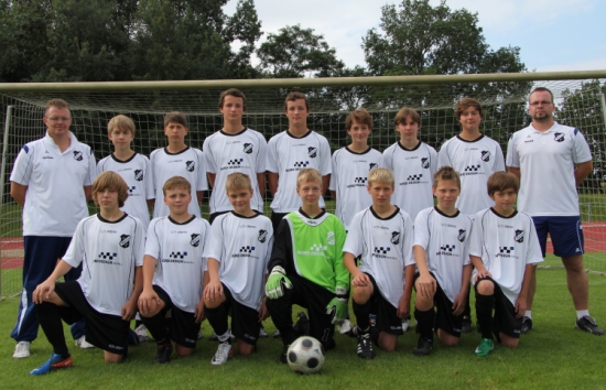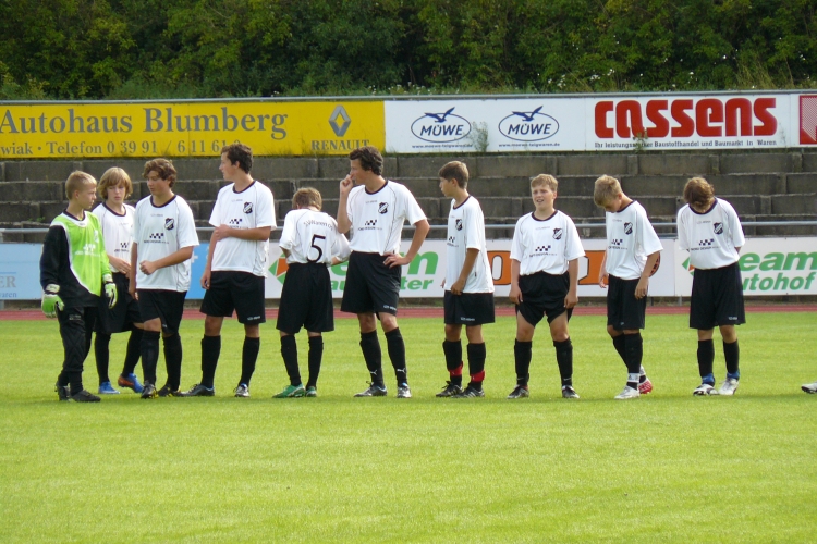 C-Junioren SV Waren 09 - Hintere Reihe v.l.n.r.: Christian Bülow (Co-Trainer/TM), Tobias Konopatzki, Marvin Grabon, Maximialian Burr, Philipp Burr, Hannes Splieth, Eric Müller, Leon-Konstantin Sandhoop, Ronald Schneider (Trainer)