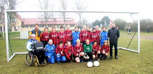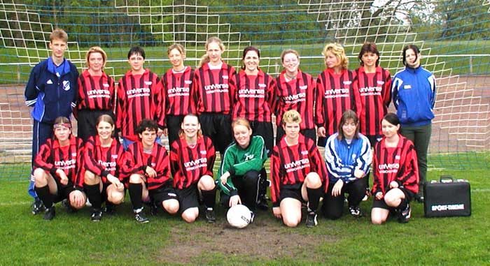 v.l.n.r. stehend: Matthias Held (Trainer), Gudrun Müller, Simone Lüdke, Sandra Horst, Susann Kinzelmann, Jenny Seib, Anne Schult, Sandra Schulz, Friederike Krugmann, Liane Könnecke, Susanne Lüttich, Ralf Siegmund (Sponsor)