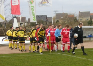 Beide Mannschaften laufen unter Leitung von Herrn Kaminsky auf. |