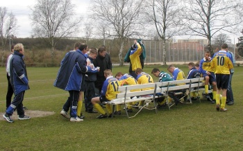 Halbzeit: Pause mit heißen Getränken. Bei außergewöhnlich niedrigen 4° C Außentemperatur von allen Spieler dankend angenommen |